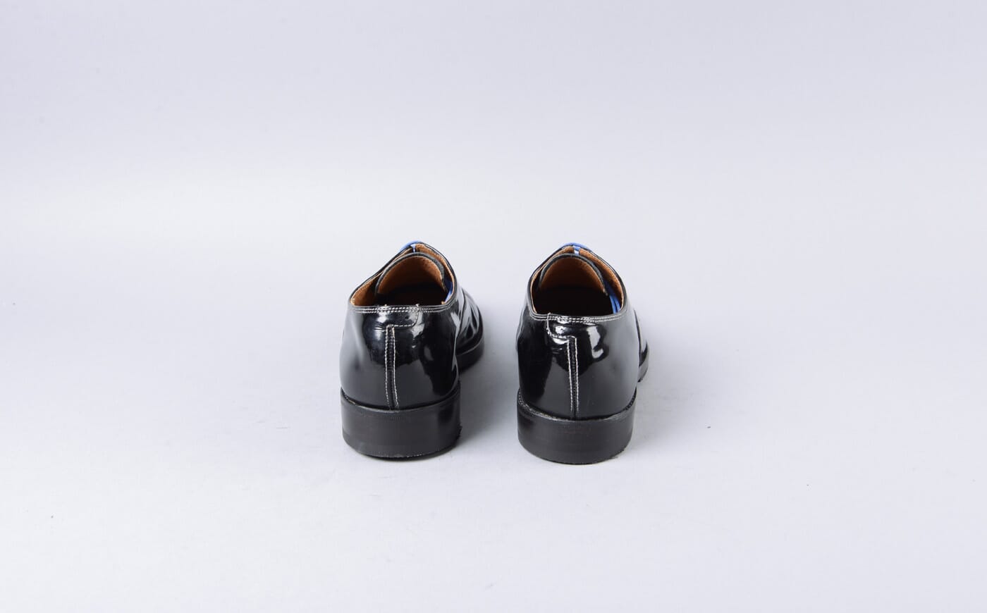 Elsie is a women's patent leather Oxford shoe with decorative stitching detail along the facings. There is no toe puff fitted to harden the toe area within Elsie which makes for a soft wear.