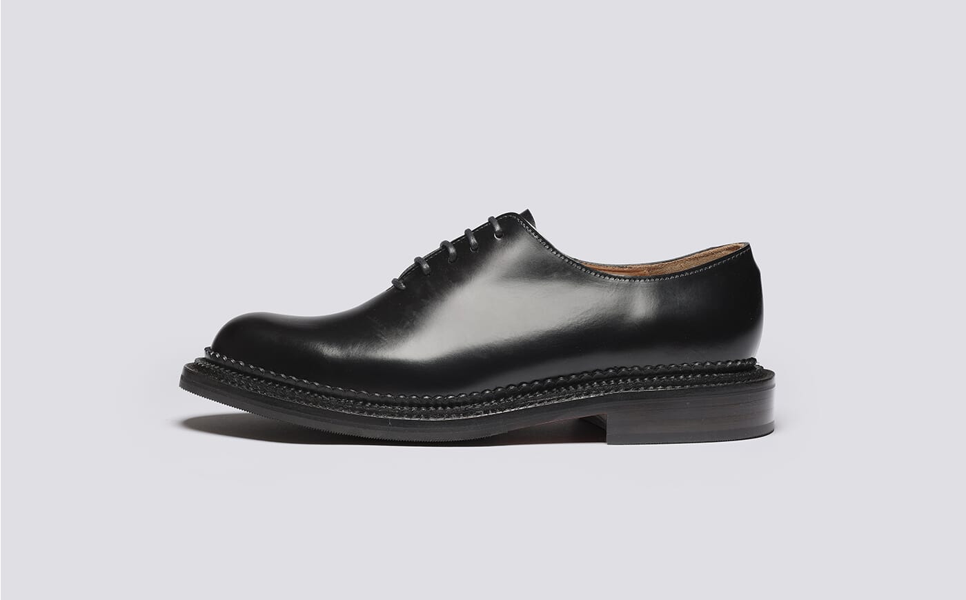 Michael is a mens wholecut oxford, simply styled from a single piece of leather and made from polished black bookbinder leather with a practical rubber and leather sole and our signature triple welt on our classic 201 last. The Grenson Triple Welt was originally conceived by our craftsmen in the 'making room'. It features a unique stepped, triple style welt that makes the most of classic British Goodyear welted shoemaking. Made exclusively 'skin to box' in the Grenson factory this is a true shoemaker's shoe. This item is Goodyear Welted.